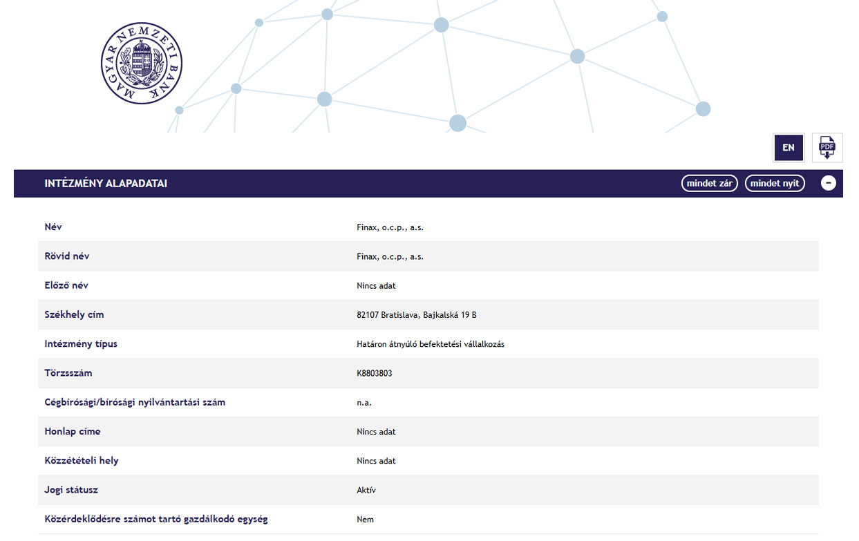 További információkat a Finax társaságról részletes áttekintésünkben talál.